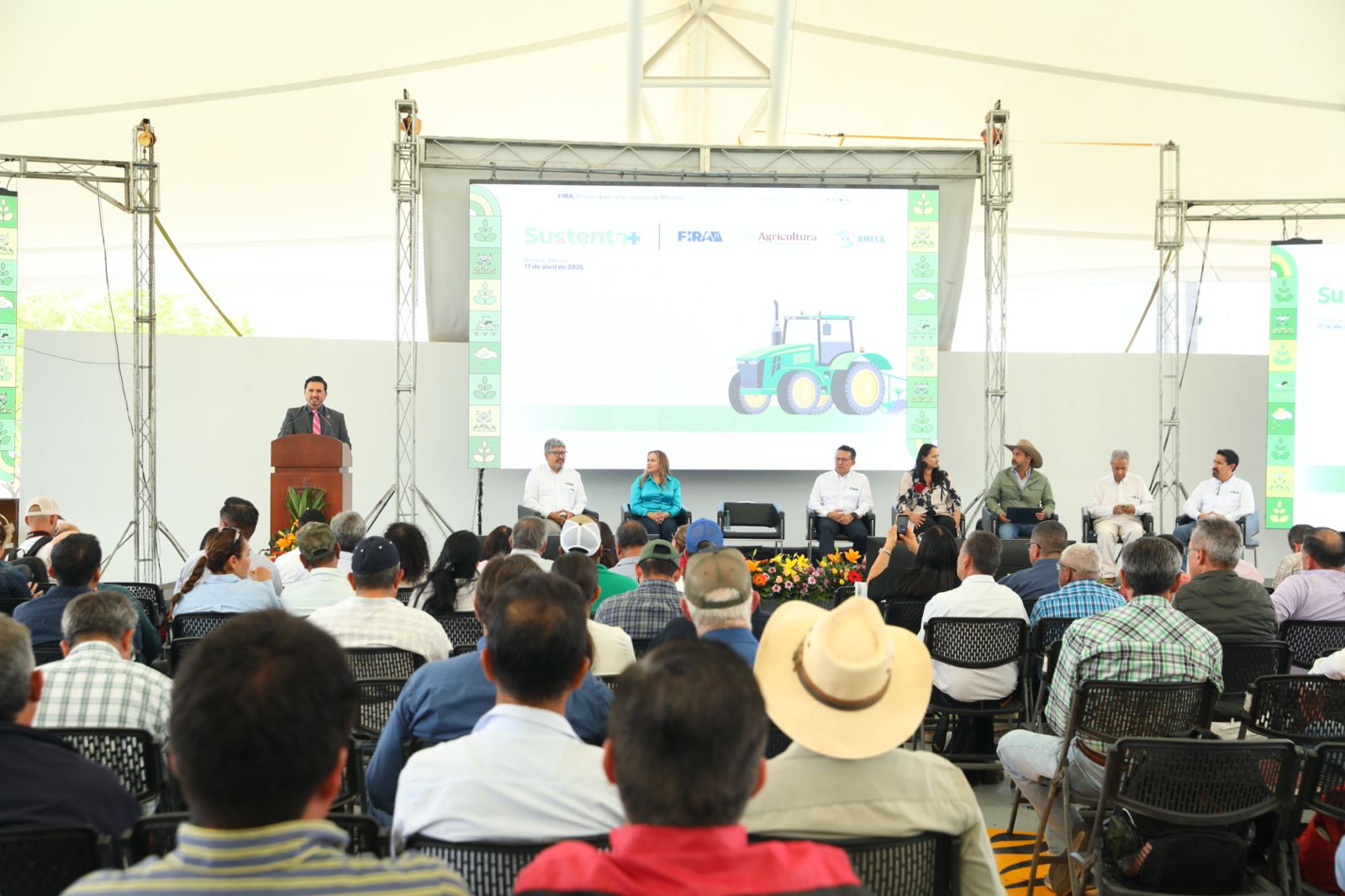 Del mismo modo, el director general de FIRA, Jesús Alan Elizondo Flores, presentó el programa Sustenta+, un esquema de incentivos que promueve la adopción de paquetes tecnológicos basados en el uso de bioinsumos. El programa busca reducir el uso de fertilizantes químicos entre un 15 y un 30 por ciento, lo que permite optimizar costos de producción y favorecer prácticas más sostenibles.